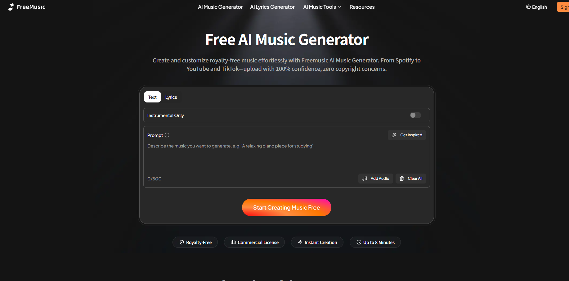 Freemusic AI focuses on speed and accessibility.