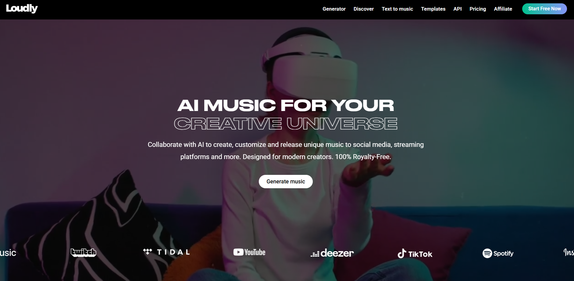 Loudly is an AI music generator that works well for businesses that value reliability and clear legal language.