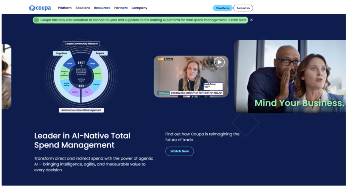 Coupa is an AI-native supplier and procurement platform that streamlines sourcing, spend, and compliance management.