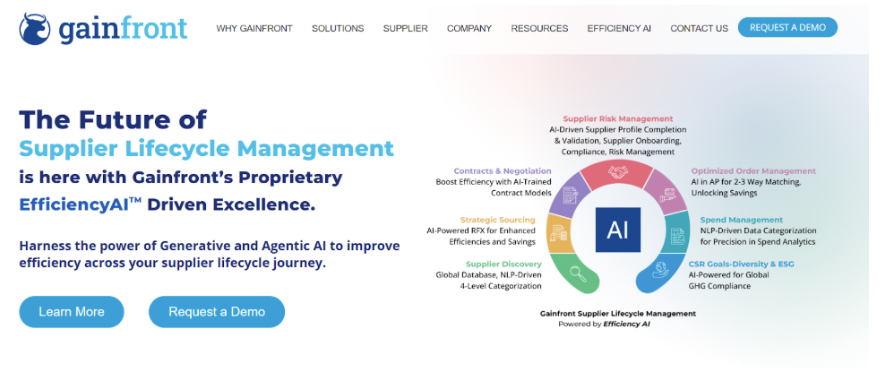 Gainfront is an AI-powered supplier sourcing and database platform that automates RFI, RFP, and RFQ management.