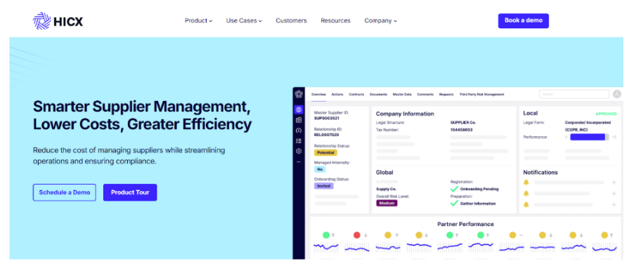 HICX is a supplier database and workflow platform that consolidates data and automates processes with no-code tools.